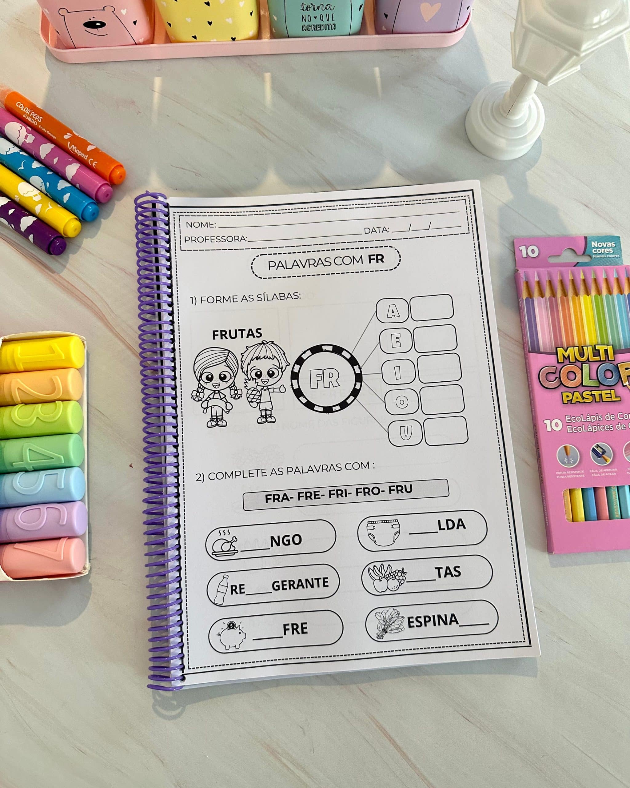 Apostila Atividades Sílabas Complexas volume 2 para trabalhar o conteúdo com crianças em fase de alfabetização. O arquivo vai em PDF pronto para impressão, são 49 páginas de atividades para colorir.