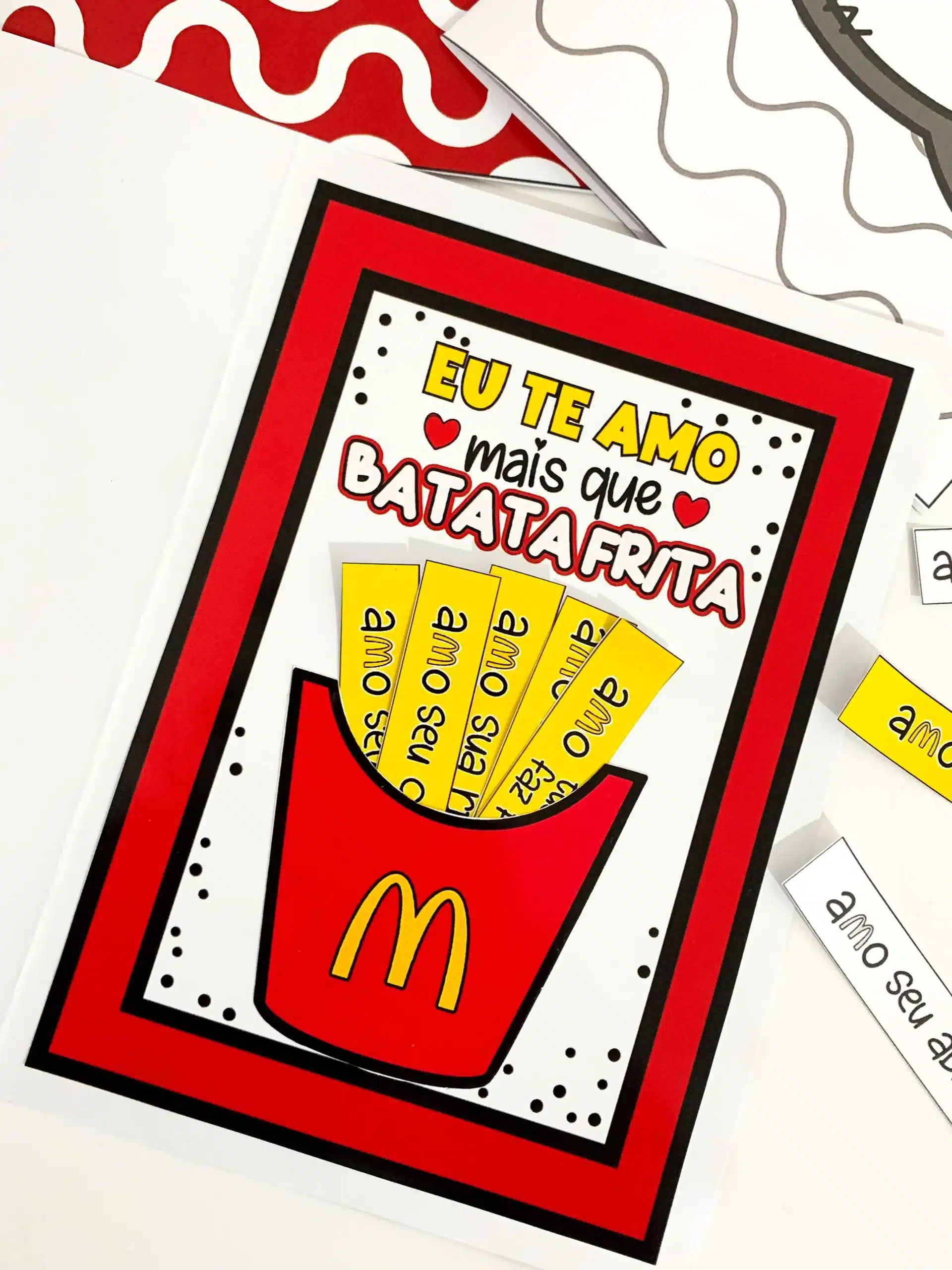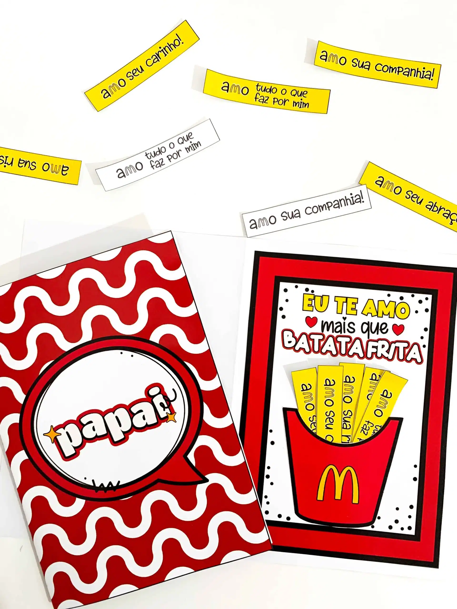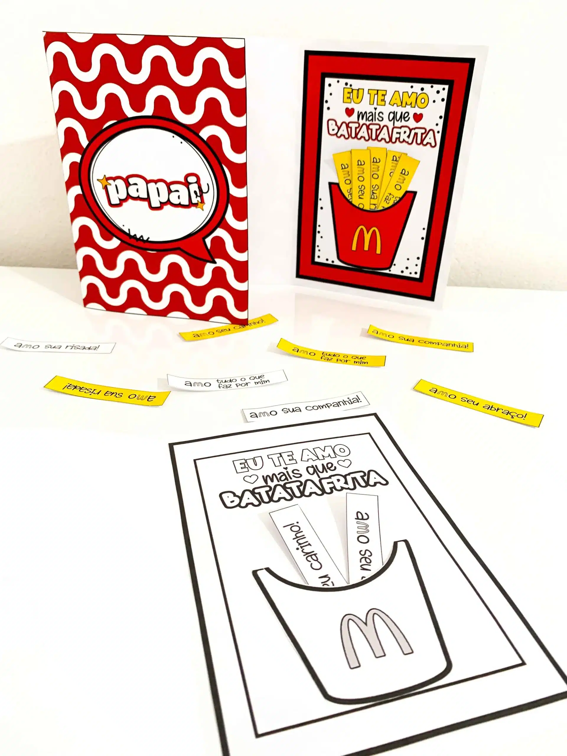 Cartão Dia dos Pais tema Batata Frita O arquivo vai em PDF pronto para impressão, nas opções colorido e para colorir. Cartão interativo lindo e de fácil montagem, que vai com vídeo tutorial de com o passo a passo. Para impressão recomendamos papel de gramatura 120 ou superior.
