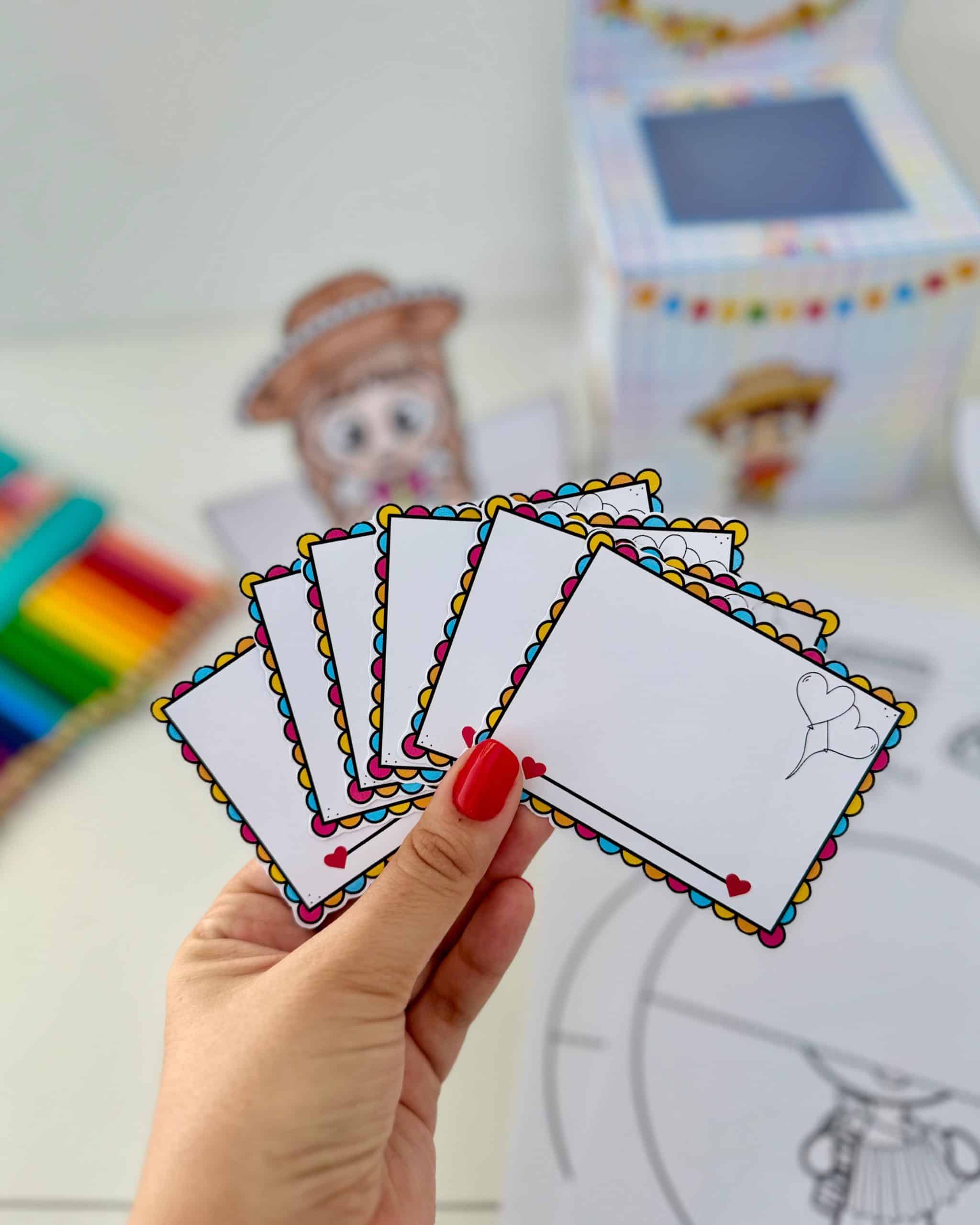 Arquivo lindo que vai com vídeo tutorial de montagem. As cartas podem ser utilizadas para as crianças desenharem ou escreverem um recado para os colegas.