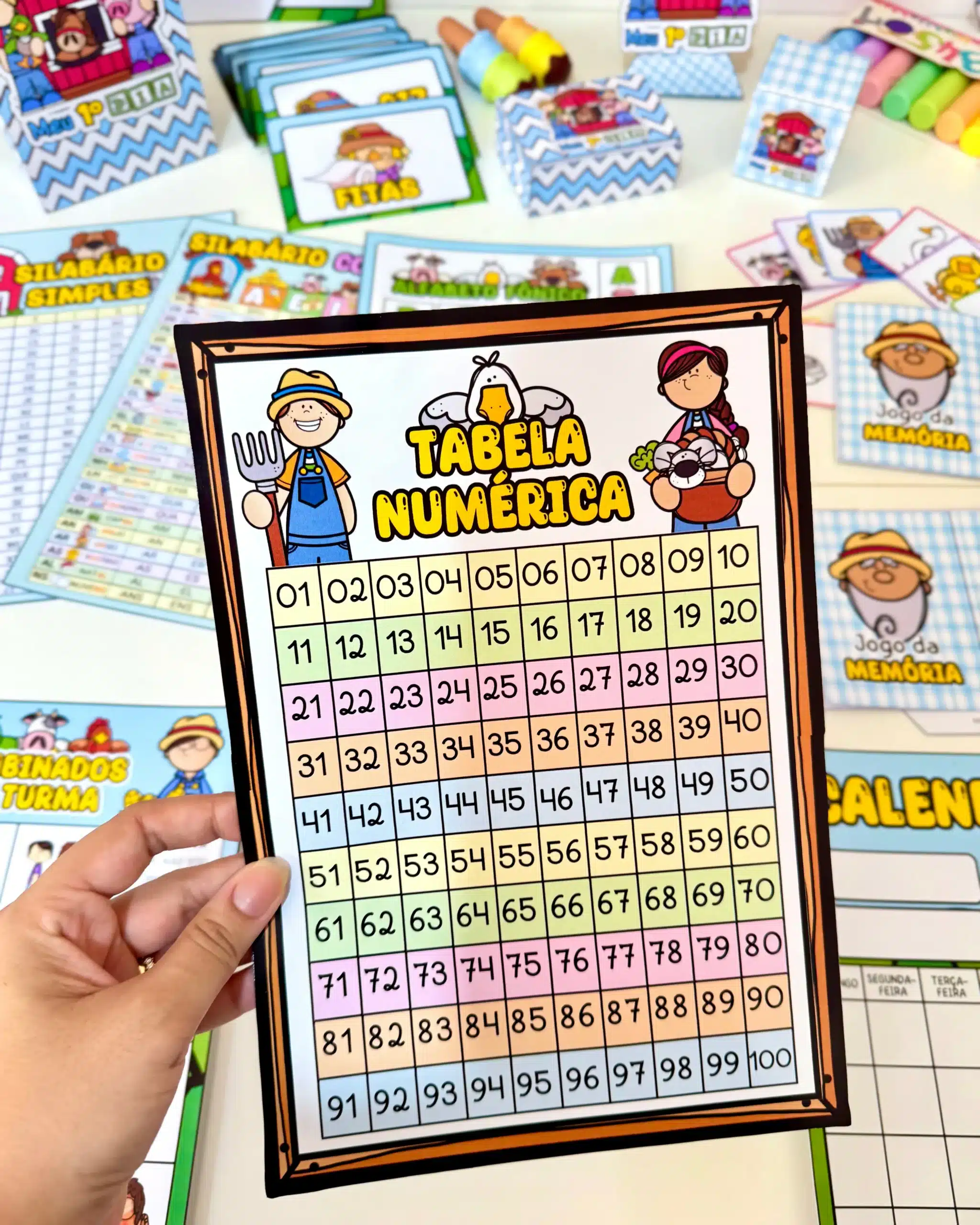 Kit Ornamentação de Sala de Aula tema Fazendinha para turmas da Educação Infantil e séries iniciais do Ensino Fundamental. O kit vai com 28 arquivos, que incluem: Lembrancinhas primeiro dia Alfabeto fônico (76cm x 53cm) Moldura 1º dia Capas de caderno Calendário peças móveis (73cm x 51cm) Combinados (76cm x 53cm) Chamadinha editável (1,4m x 49cm) Quantos Somos (54cm x 77cm) Aniversariantes (53cm x 69cm) Silabário simples (75cm x 52cm) Silabário complexo (78cm x 54cm) Elementos para decoração Placa de porta Editável (88cm x 35cm) Crachá de mesa Bandeirolas bem vindos Palavras mágicas (73cm x 51cm) Ajudantes do dia (76cm x 39cm) Que horas são (75cm x 53cm) Vogais (40cm x 37cm) Palavra do dia (75cm x 53cm) Alfabeto de parede Cores (1,5m x 47cm) Formas geométricas (1,7m x 55cm) Numerais de parede (2m x 40cm) Placas de pescoço Tempo hoje (74cm x 57cm) Tabela numérica (74cm x 57cm) Etiquetas materiais O arquivo vai em PDF pronto para impressão.