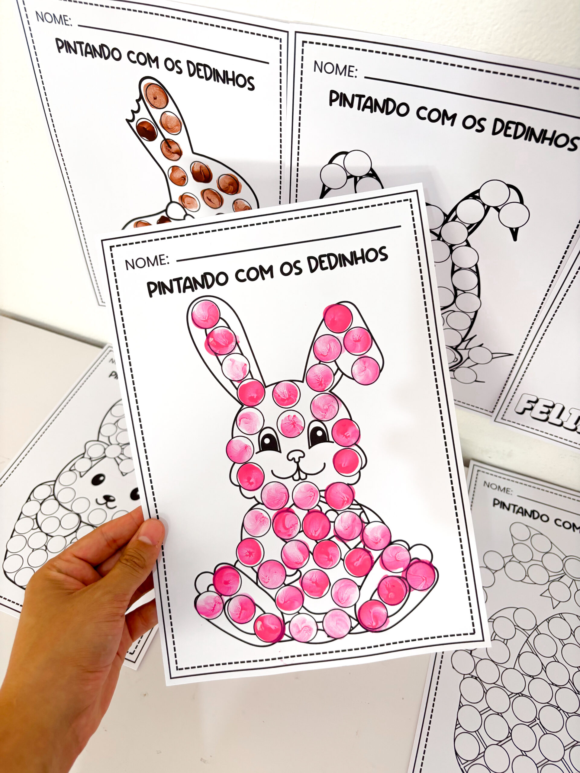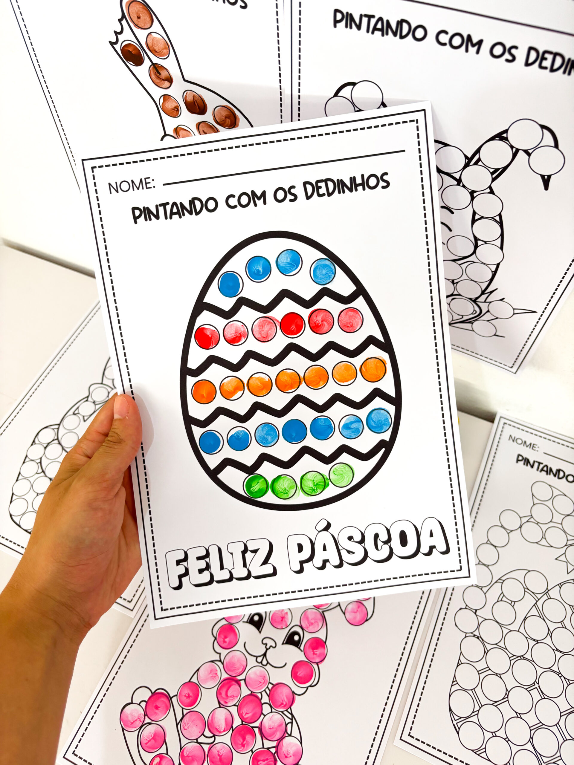 🐰 Pintando com os Dedinhos Páscoa Atividade sensorial que transforma a pintura em uma experiência rica de aprendizagem. A criança explora cores, formas e espaços enquanto desenvolve habilidades essenciais de forma lúdica e envolvente. ✨ O que você recebe ✔ 6 atividades de pintura com os dedinhos ✔ Propostas com temática de Páscoa ✔ Material simples e prático de aplicar 💡 Ideal para ✔ Desenvolver coordenação motora fina ✔ Estimular percepção visual e noção de espaço ✔ Trabalhar cores, padrões e criatividade ✔ Promover concentração e atenção 📄 PDF | Não editável | Pronto para impressão 📚 9 páginas Uma proposta prática e encantadora para trabalhar a Páscoa na Educação Infantil.
