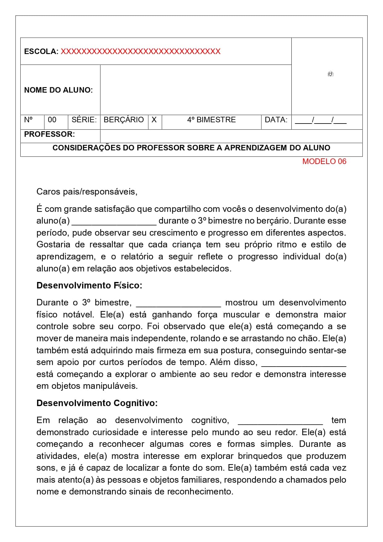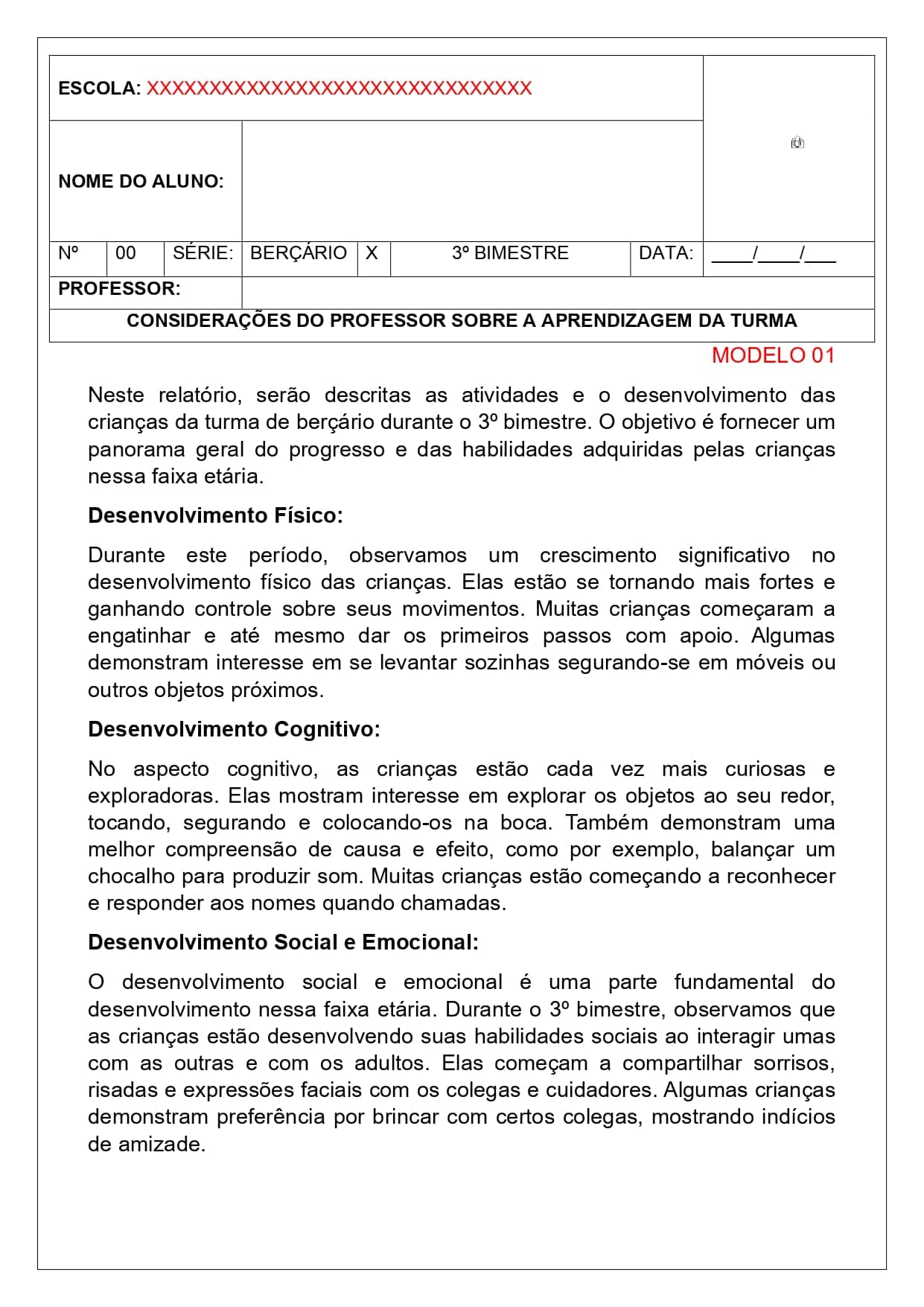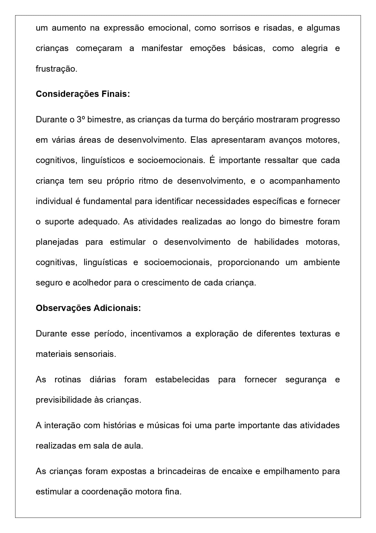 Relatórios de desenvolvimento – berçário – *3º bimestre/trimestre*