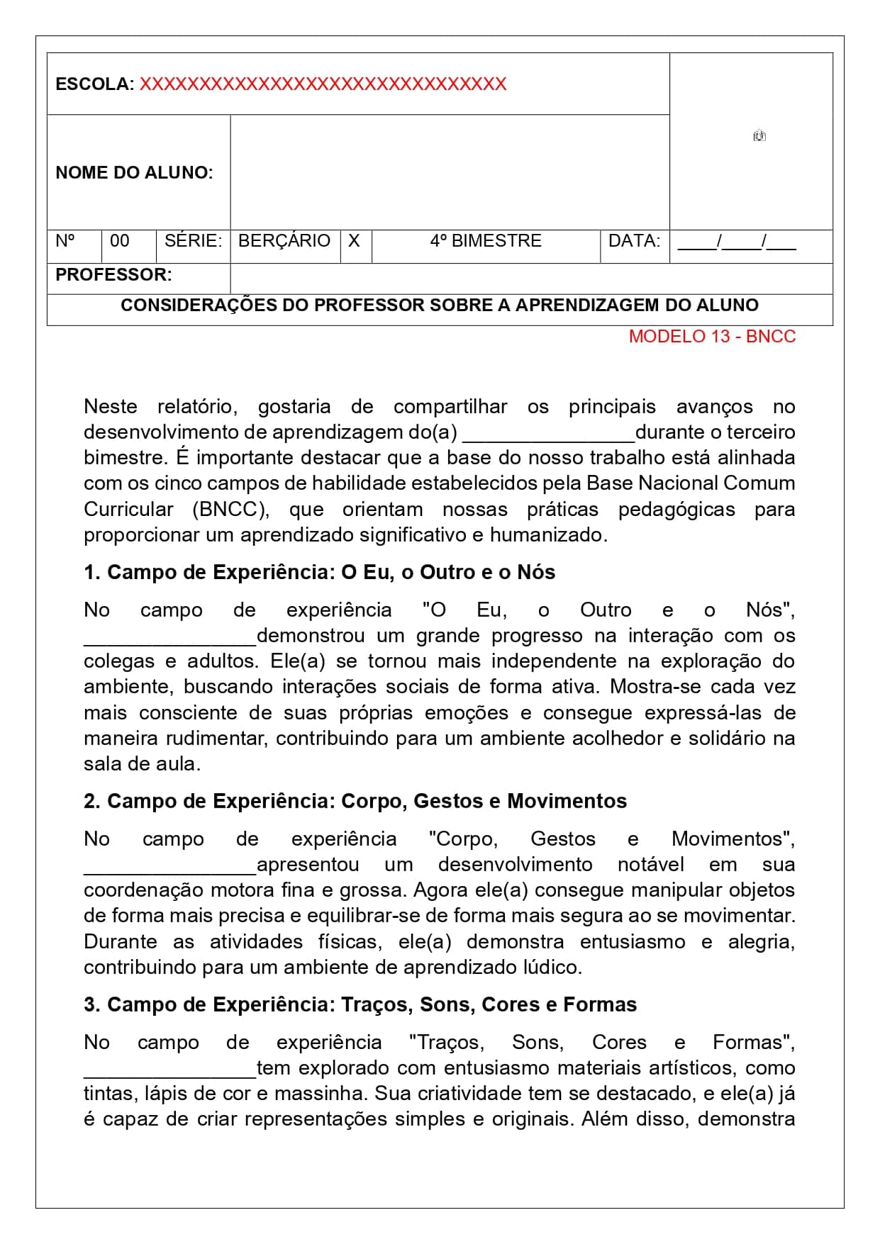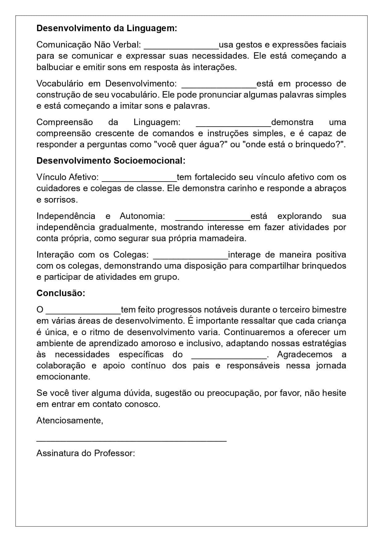 Relatórios de desenvolvimento – berçário 3º bimestre/trimestre